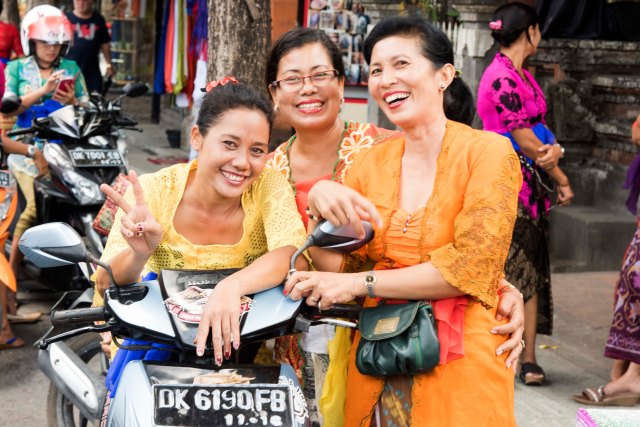 Arriving in Bali airport on a Saturday morning I was engulfed by the fragrance of frangipanis and incense as I headed off to meet my hostess buddy, Julie, at her art shop in Seminyak. I was so excited that I was finally about to partake in some Hindu ceremonies. After we had chatted for quite some time, I asked Julie where she had parked her car. “No car”, she said, “we do motorbike, Island style”. Julie chuckled at the amazement on my face. This was about to be a noteworthy ride with all my baggage.