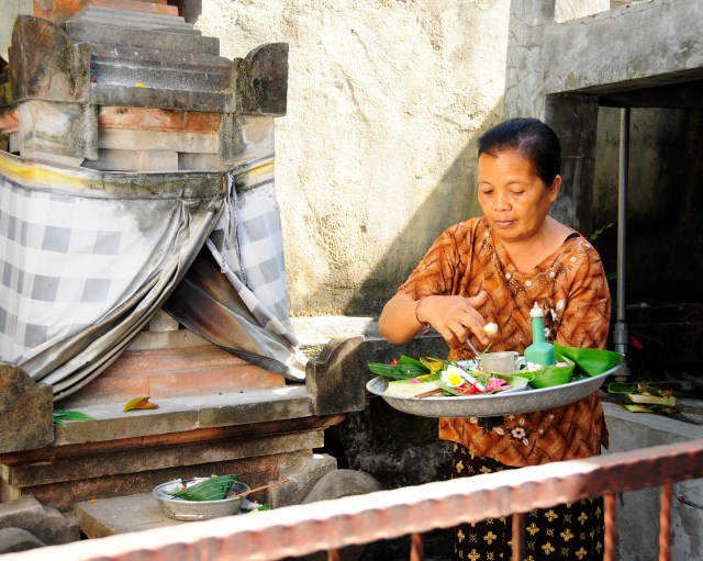 Balinese adopted both Hindu and Buddhist concepts, which is why you see statues of Buddha in Bali. Therefore, the part of Indonesia, where these ceremonials and traditions are still being done, is in Bali. Every day, the folks of the island make offerings of food and create various things for the gods.